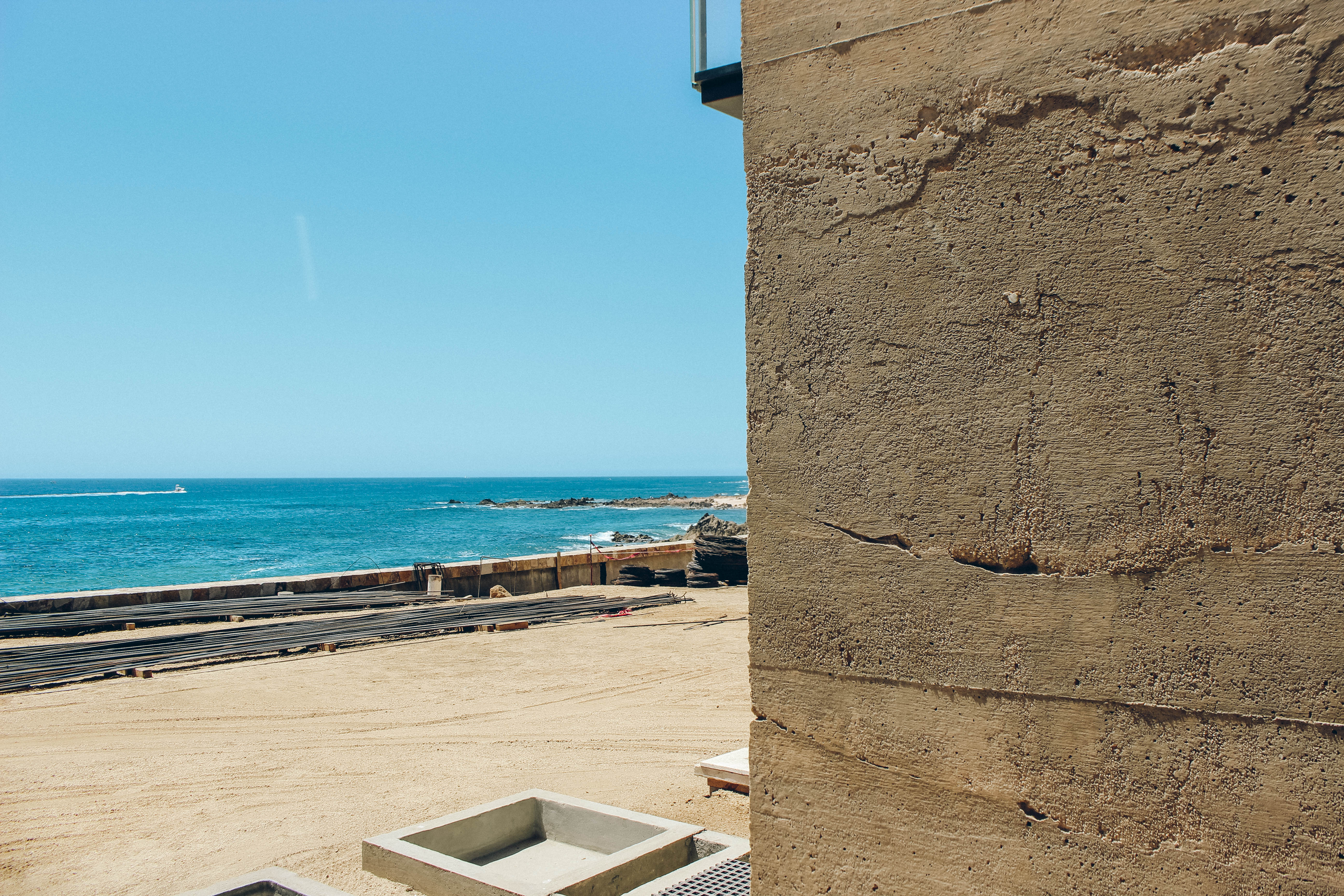 On the shore of one of Cabo San Lucas’ sparkling beaches is a modern oceanfront home featuring a unique architectural concrete finish achieved through a specially designed concrete mixture.